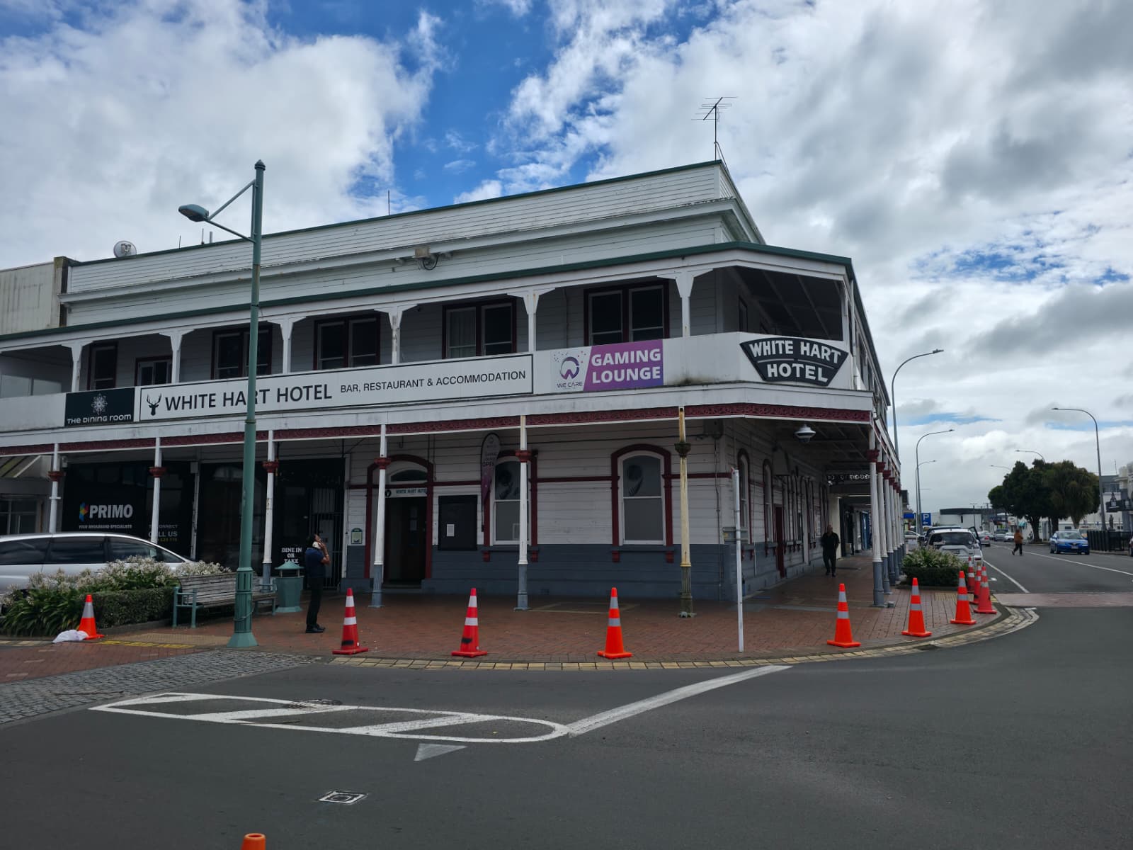 The site has housed Hawera’s iconic pub since 1876, when Thomas Lloyd opened the original Empire Hotel. After a fire in 1884 and a rebuild, a grand new timber‑built structure opened in 1909, designed by architect J E Rowe, boasting 36 elaborately furnished rooms, Wunderlich steel ceilings and electric lighting . In 1923 James N. Anderson renamed it the White Hart, and in the 1930s the ground‑floor bars and balcony were beautifully updated . Heritage-listed and still in original use, the White Hart is a cherished piece of Hawera’s timber-town legacy .